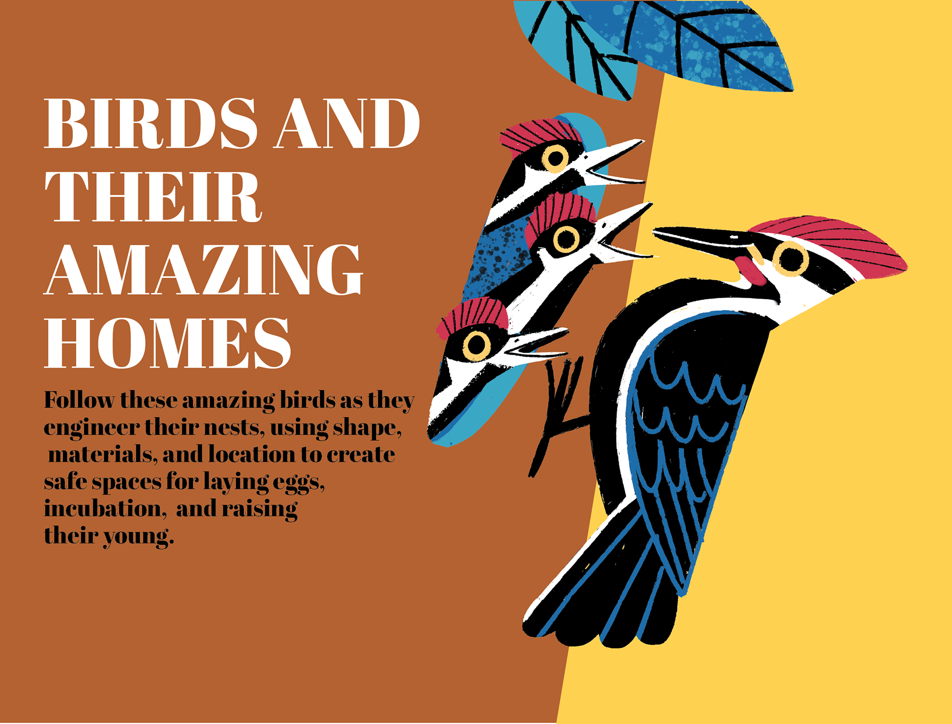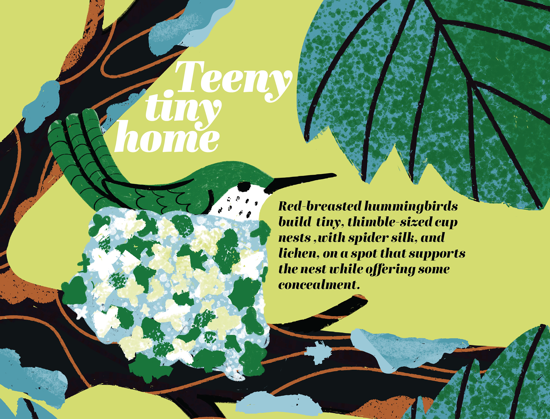 This is a self-initiated project, depicting birds and their different nests.