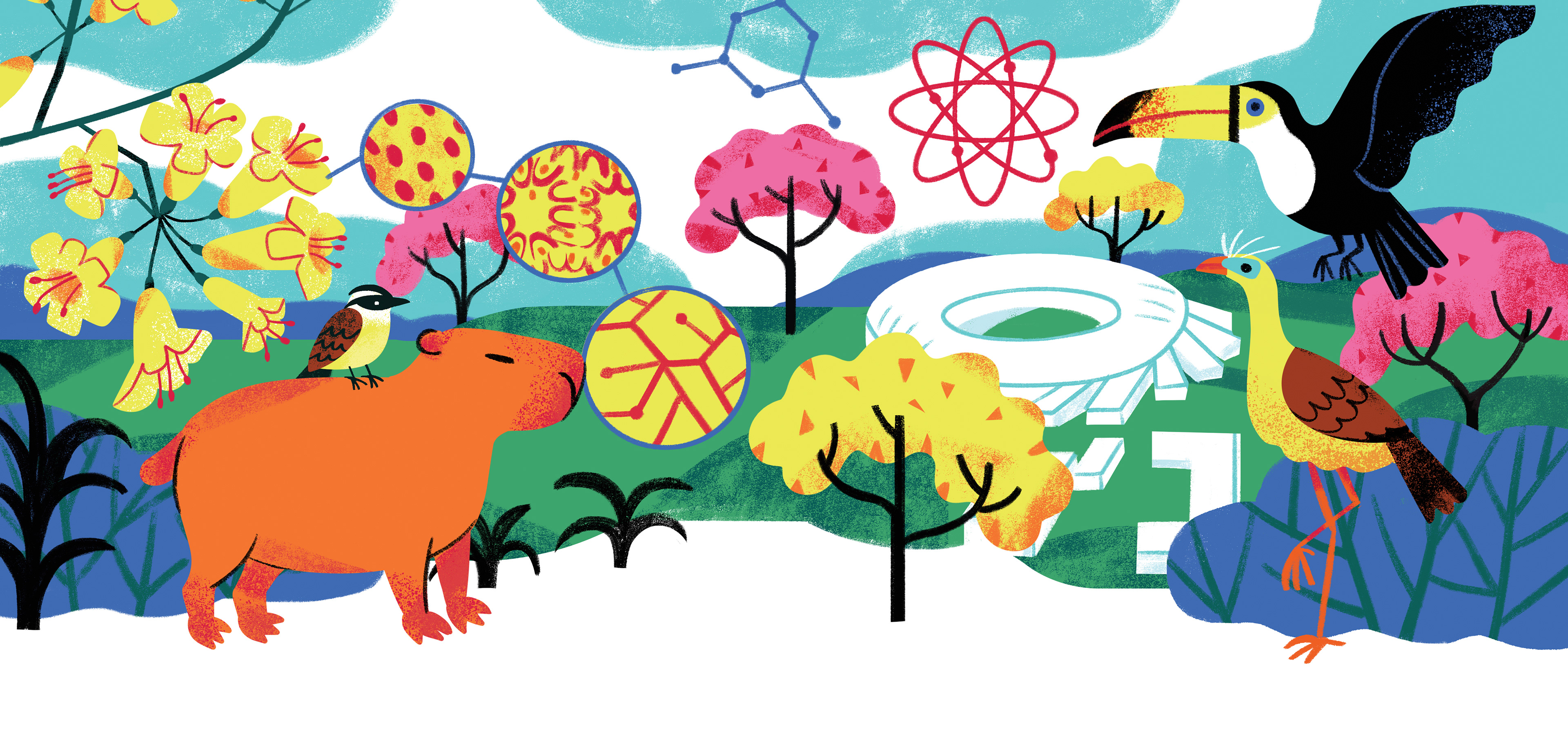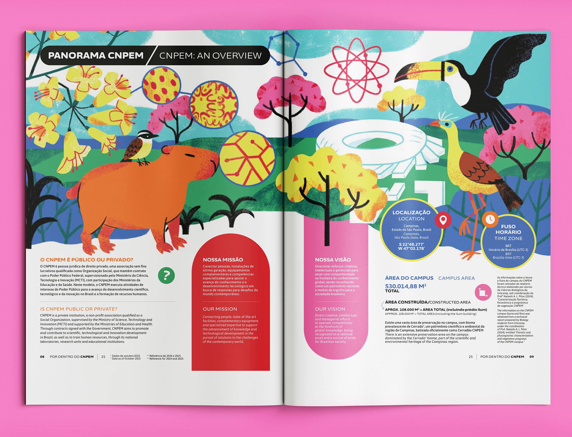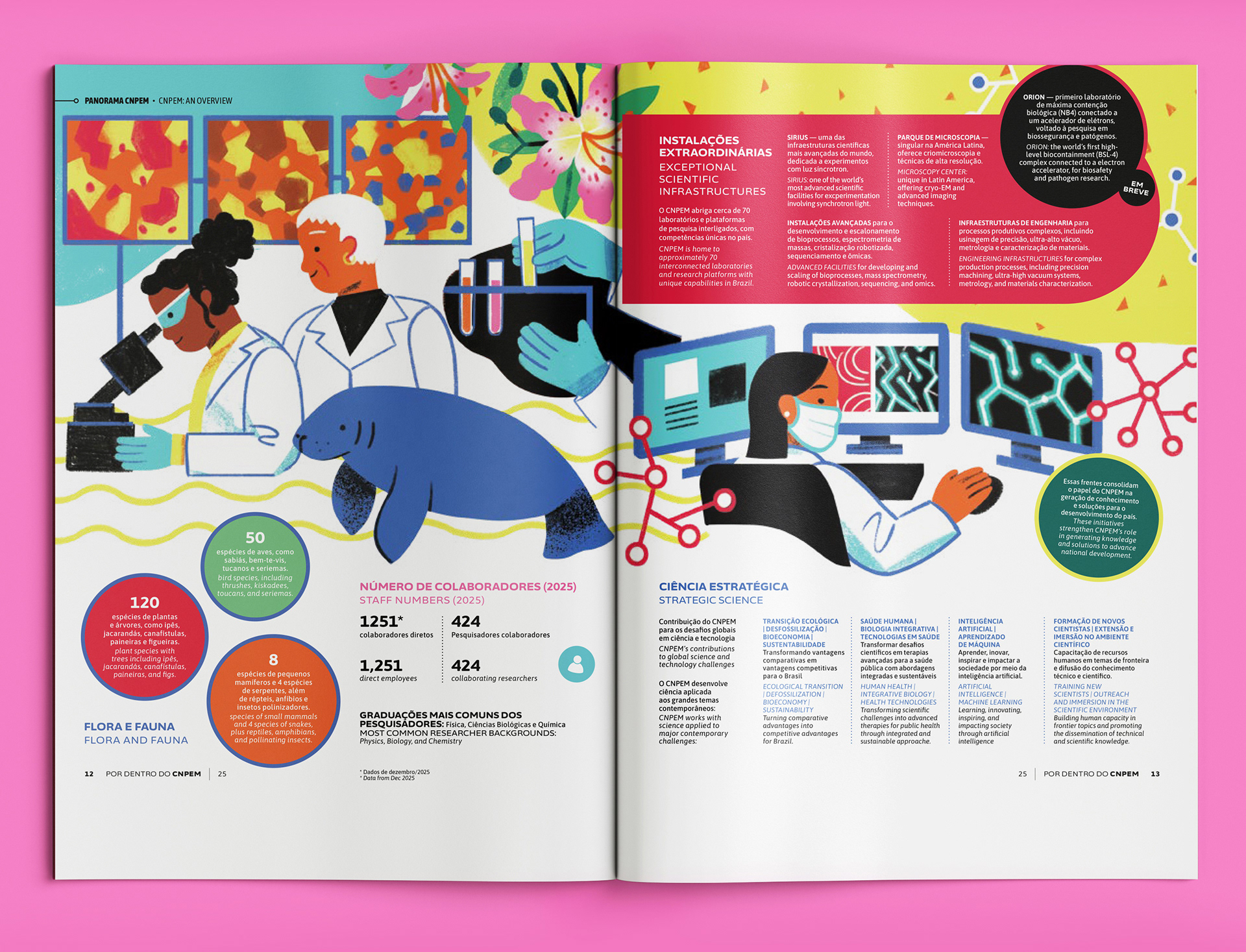 I was invited to illustrate the Overview section for the CNPEM (The Brazilian Center for Research in Energy and Materials) 2025 Annual Report. It was an exciting opportunity to explore themes that were very new to me.