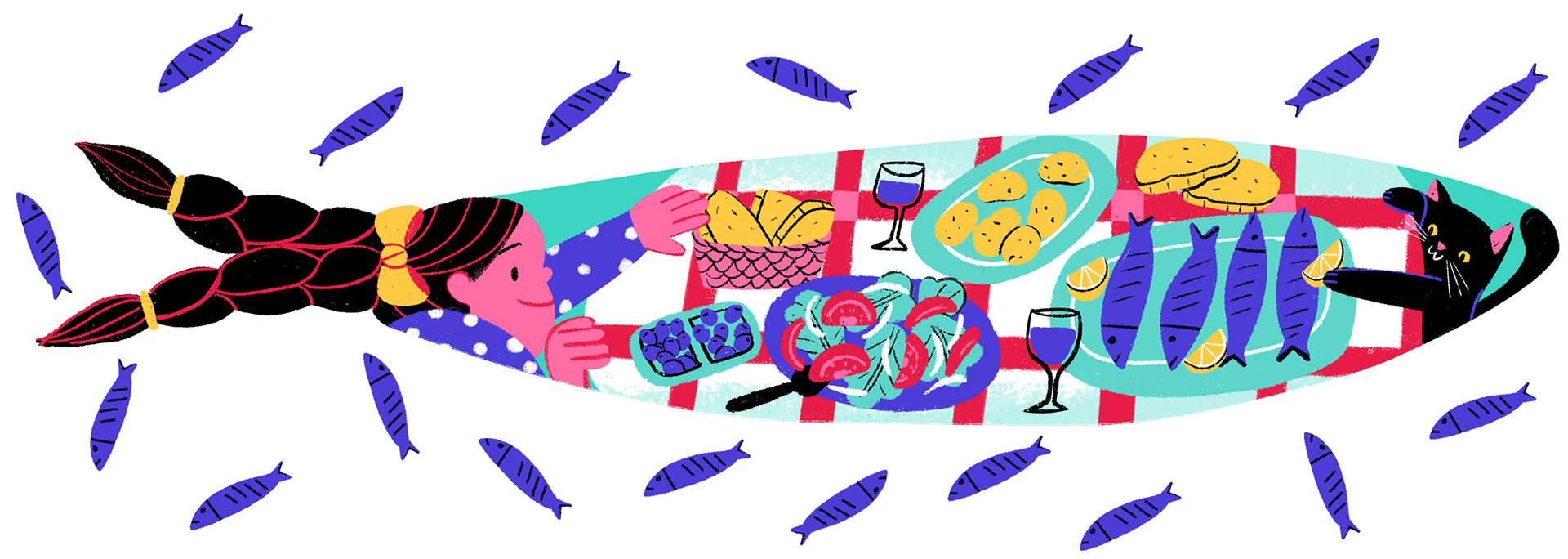As part of the festivals, tables are spread around the pathwalks/streets/squares, all over the city, and is very likely to share the table with other people. Is a very chaotic and beautiful moment of sharing table/food and public spaces. That is the feeling I was trying to convey with my illustration, in a wholesome and of course fun way!