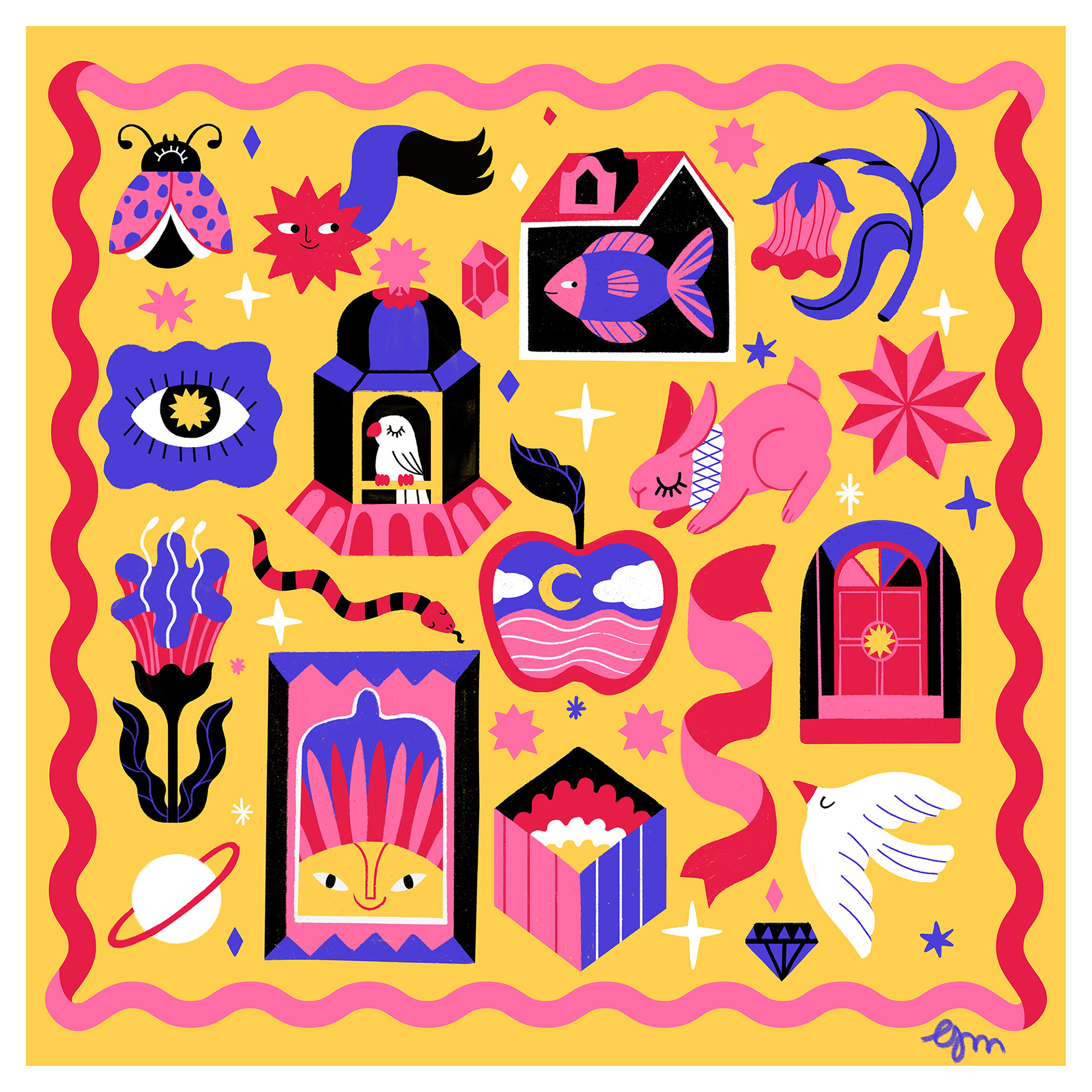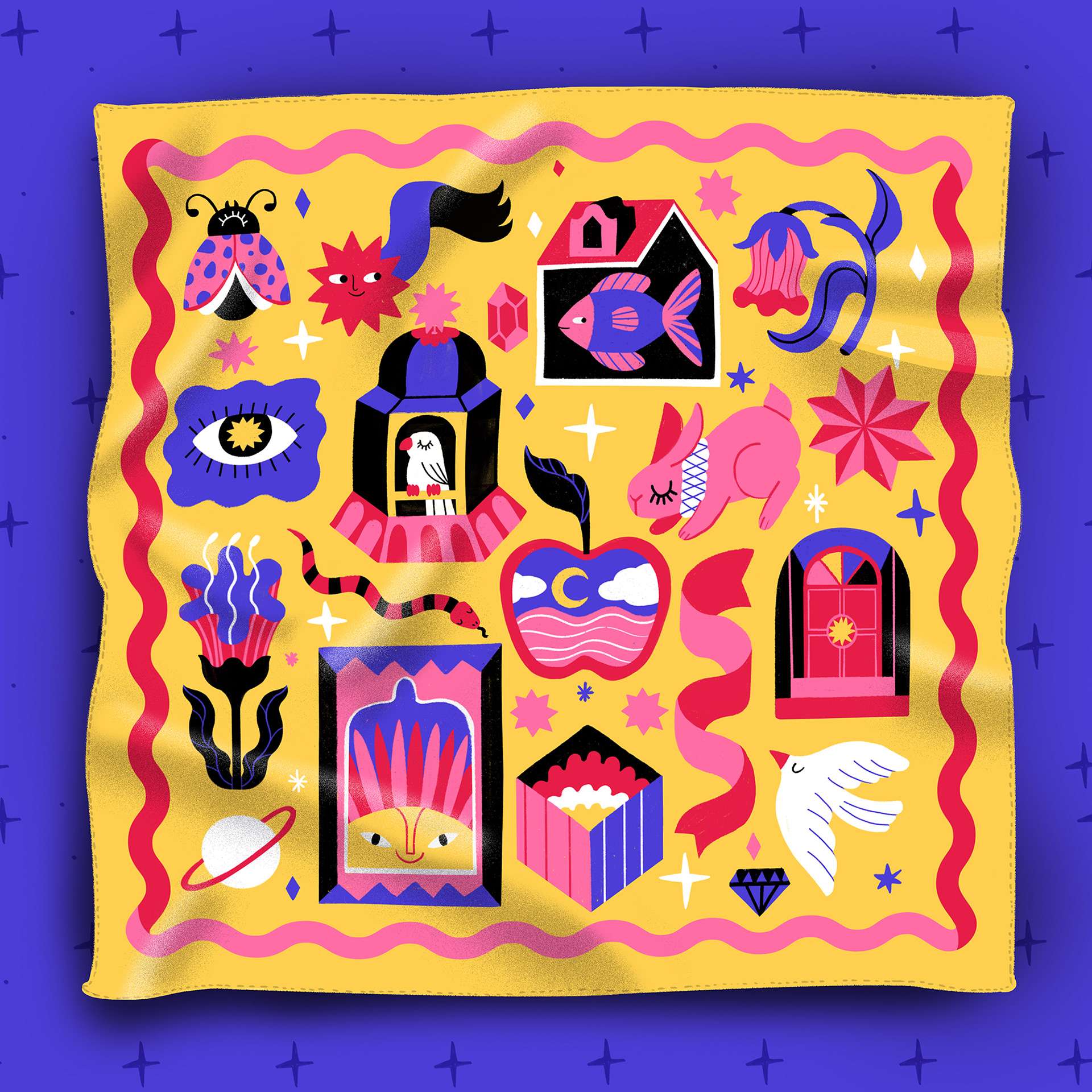 These symbols kept coming up through my exploration on my sketchbooks. As personal project I decided to work further on them, creating different applications such as a scarf design.